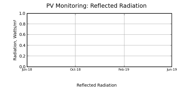 Reflected solar radiation is measured at the CCHRC PV Monitoring station. Incoming solar radiation is measured at the CCHRC Met station on the north east corner of the grounds. Voltage and current measurements are from the four tracked solar panel arrays. The trackers may be involved in experiments over time and may not be tracking the sun at all times.