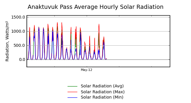 | Solar Radiation (Max / Average / Min) | |